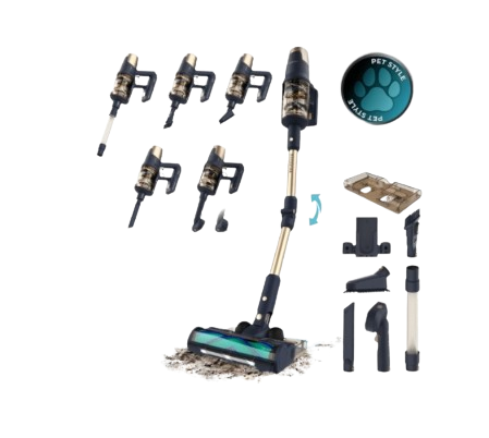 Con un acabado elegante en tonos oscuros y dorados, la Rockstar RX70 ofrece una potencia de succión superior y una versatilidad inigualable gracias a su completo kit de accesorios especializados para tapicerías y esquinas.