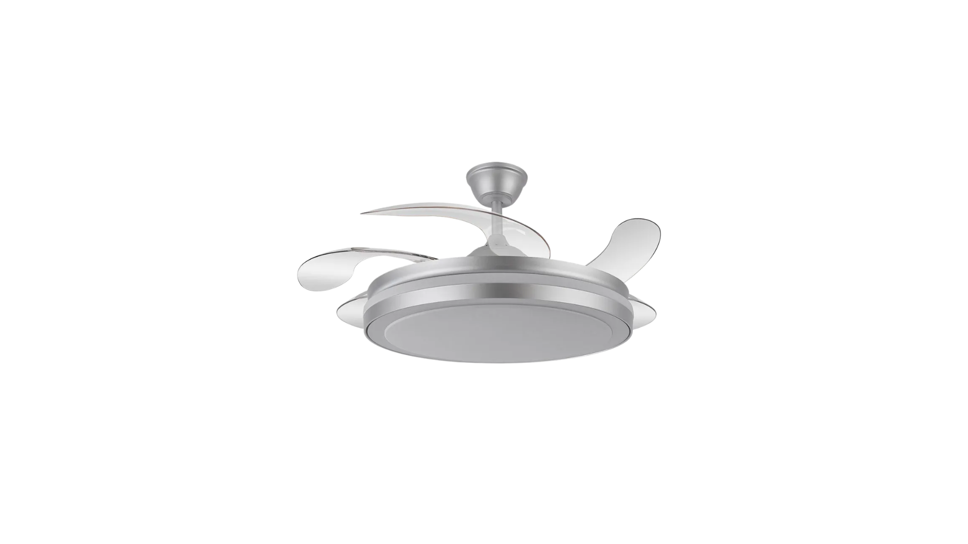 Ventilador DC de la serie ESPARTA MAXI realizado en metal, policarbonato y ABS, en color PLATA con cinco aspas DESPLEGABLES de ABS transparente muy resistentes. Tiene seis velocidades ajustables. Tecnología LED integrada con una potencia de 80W, con 3 TEMPERATURAS SELECCIONABLES DE LUZ (3000-4000-6000K) y 10.255 lúmenes. Control de aire verano o invierno. Su medida es de 36,5/49X58 centímetros con las aspas plegadas y de 36,5/49X132 centímetros con las aspas desplegadas. Incluye dos tijas de 10 y 22,5 centímetros, para colocar a distintas alturas. Mando a distancia INCLUIDO, con MEMORIA DE COLOR incorporada y TEMPORIZADOR 1/4 H. Cuatro tamaños disponibles en esta serie, MAXI, PLUS, MINI Y PEQUE, con sus respectivas potencias y en tres colores, blanco, plata y negro, para elegir el que mejor se adapte a su decoración.