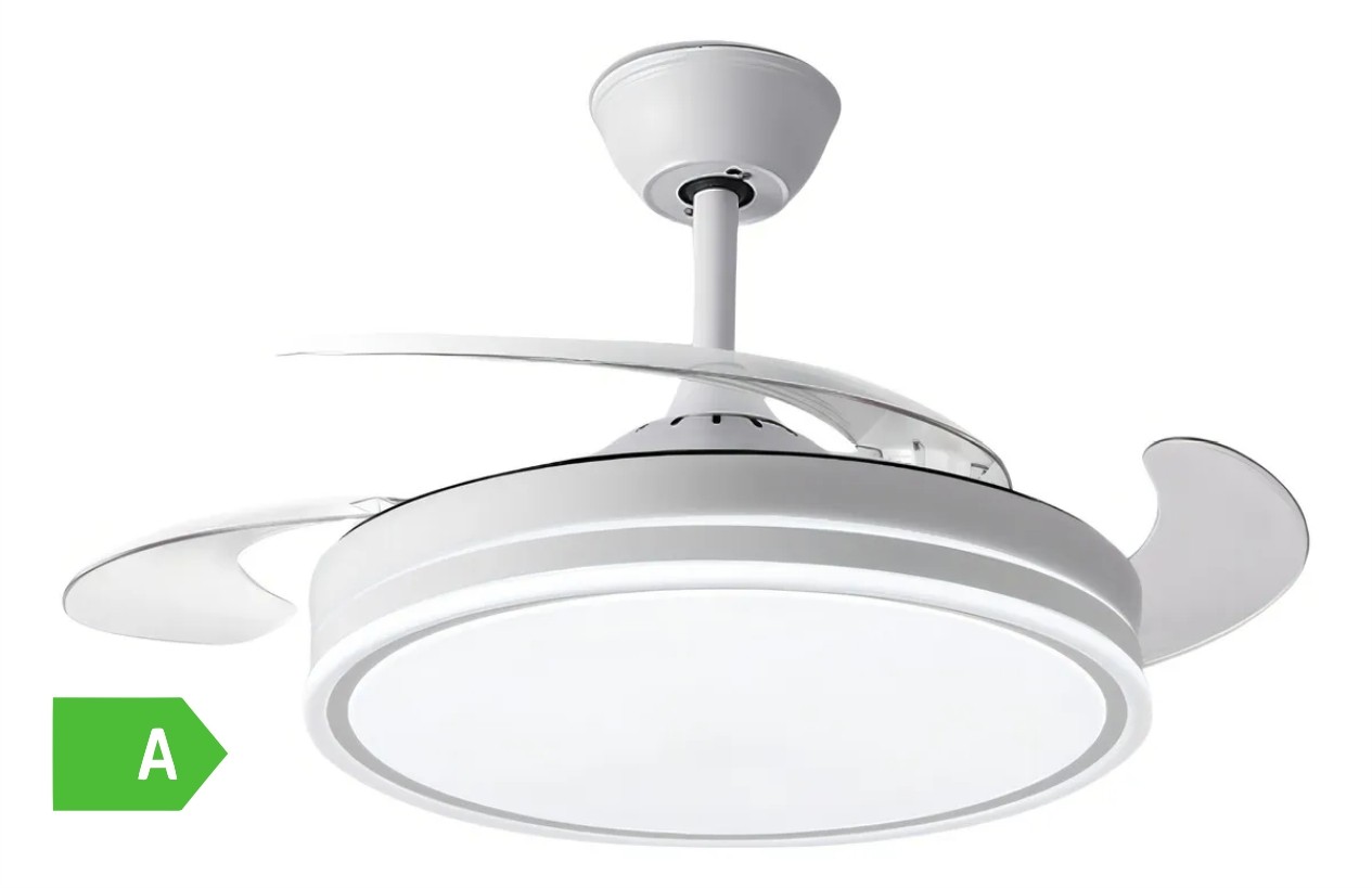 BASTILIPO, ESTORIL BLANCO, ventilador de techo retráctil de 106cm, calidad premium, motor DC, Luz LED 3 tonos 36W, mando a distancia